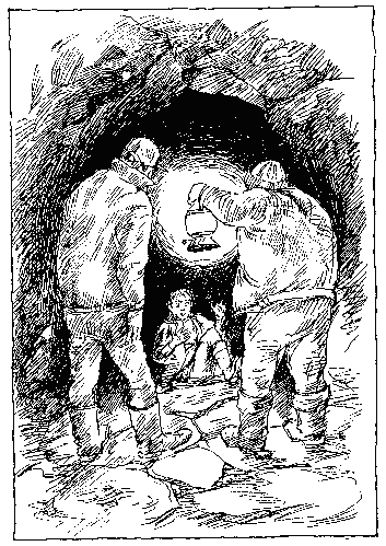 – Куда они подевались? – пробормотал Тим себе под нос, хотя знал, что путь у них только один. Поддавшись неожиданной панике, он бросился в тоннель. Немного ниже тот раздваивался. Мальчик с облегчением заметил, как за поворотом мелькнул желтый огонек лампы: значит, взрослые недалеко. Мужчины разговаривали. Тим уже хотел было окликнуть их, но что-то в тоне их голосов насторожило его. Он замер, подкрался поближе и прислушался.