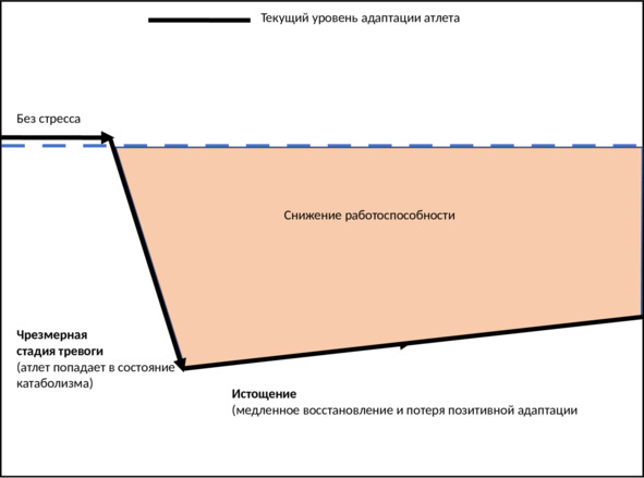 В краткосрочном плане такое накопление стрессовых воздействий приводит к острому снижению работоспособности. Такое может произойти, когда жесткие тренировки накладываются на суточные дежурства, огневую и тактическую подготовку, и в итоге через пару недель атлет не способен выдерживать заданный тренировочный график.