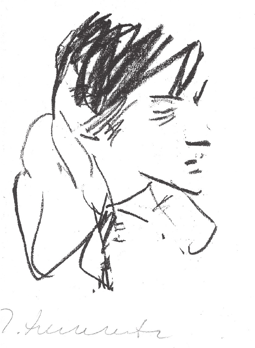 Портрет Л. Богданова работы Г. Неменовой. Литография. 1960-е.