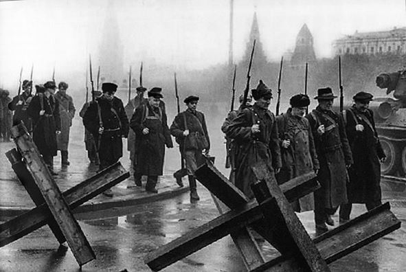 Пятые сутки наша 9-я Кировская дивизия народного ополчения совершает походный марш из Москвы. Позади уже триста километров пути. И на протяжении всего этого расстояния от столицы возводятся рубежи эшелонированной обороны. По шоссе снуют машины с техникой, железными балками, брёвнами. То тут, то там на склонах холмов видно, как люди роют окопы.