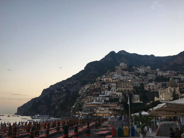 В Сорренто снова свадьба в Сан Франческо, на маленьких площадях гастролирует ансамбль в народных костюмах, с ними пляшут народные танцы продавцы и «информаторы» (аск ми иф ю нид информейшн); в Позитано пускаются в песни и пляс официанты – уличный гитарист затянул Воларе; туристы снимают; луна почти полная; закат в розово-фиолетовой дымке; лодки сползаются на ночлег.