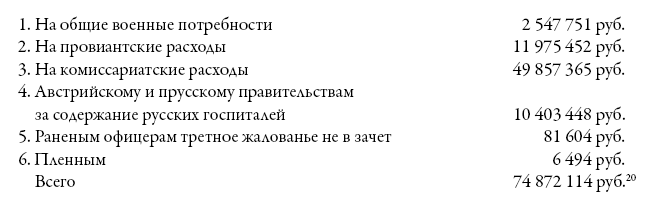Издержки на содержание русских войск в 1814 году вообще простирались до 75 миллионов рублей ассигнациями, а именно: