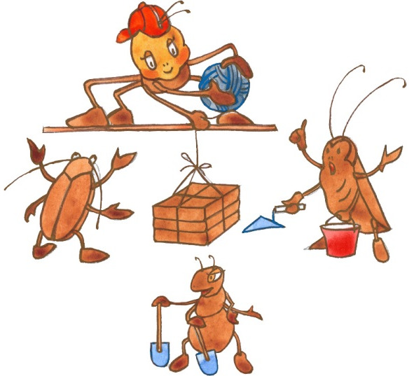 Пауки и тараканы,Точно башенные краны,Для трубы и для печиПоднимают кирпичи.