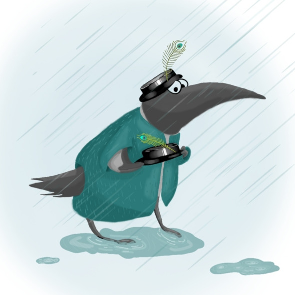Сидя в кафе, ворона держала чашечку имбирного чая с лимоном и, смакуя чай вприкуску с сухарём, о чём-то мечтательно грезила. За окном тарабанил дождь, не умолкал порывистый ветер.