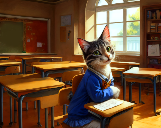 – Например, по дороге в школу кот видит, что воробьи совсем обнаглели и клюют зёрна прямо у него под носом. Он должен остановиться и разогнать их. Или молочница несёт парное молоко на рынок. Кот должен подбежать к ней и, жалобно мяукая, выпросить молока. Множество важных вещей могут задержать кота в пути, всего и не перечислить. Бывают дни, когда в классе остаётся только один ученик.