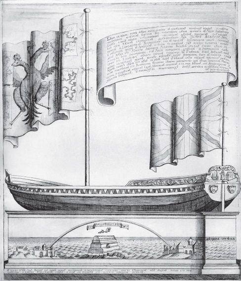 Тема увековечения воинских подвигов и побед, боевой славы армии и флота вообще была близка царю, волновала его. Потому-то и сооружаются в молодом городе на Троицкой площади триумфальная арка в честь победы при Гангуте и «перемида четырех фрегатов», посвященная победе флота при Гренгаме в 1720 году. Долгое время царь вынашивал идею сооружения «триумфального столпа», на котором в больших чеканных «медалях» должны быть изображены все крупнейшие события Северной войны – эскизный проект этого памятника находится в Эрмитаже. Но среди всех этих затей (включая и конную статую Петра, исполненную в 1719 году скульптором Карло Растрелли) «Дедушка русского флота» занимал особое место. Он всегда «жил» отдельно – этим подчеркивалась, утверждалась его исключительность, «особость».