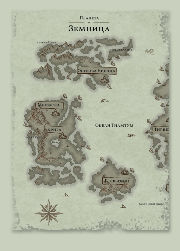 Сегодня середина зимы, праздник Вьялица на землях Вервины. Это один из многих почитаемых дней, прочно укоренившихся на севере. Ни один другой народ не имеет такого количества праздников, обычаев, традиций и поводов для ярмарок и собраний, сколько жители Вервины. Что-то является их давней традицией, что-то принесли другие народы, удачно влившись в общую культуру. Рассказывали, что раньше на Вьялицу обязательно случались крепкие морозы, нередки были долгие снегопады, засыпавшие дороги по колено, а местами и по пояс. Северная часть Вервины и вовсе превращалась в ледяную пустыню, и не многие отваживались продолжать жить севернее крайних границ, разделявших страну на две части: обитаемую и почти пустую. Жизнь за северной чертой не отличалась разнообразием, чем во многом устраивала тех, кто искал уединения и покоя. Их крепкие дома неплохо спасали от холода, а провиант обычно закупался на месяцы вперед, чтобы лишний раз не выбираться из труднодоступных земель. В летний период природа за северной чертой отличалась изящной суровостью, зимой же была по-настоящему опасна для неподготовленного путника, потому отсекала иноземцев, проходимцев и авантюристов. Но сегодня о былых временах только рассказывают, ведь даже старики и те вспоминают лишь отголоски тех тяжелых зим, накрывавших земли. Зимы теперь куда теплее, и год от года все мягче, а лето, в свою очередь, дольше и жарче. Потепление принесло за собой рассвет сельского хозяйства не только в Вервину, но и по всему континенту. С каждым годом все сложнее определялась северная черта, становившись понятием более географическим, нежели климатическим, а северные территории осваивались и заселялись все охотнее, нарушая вековой покой этих мест. Десятки лет длился подъём урожаев и рост богатства, делая доступными новые части земли, открывая пути торговли, обмена, взаимодействия и развития, подарив народам период затишья, когда целые поколения на многих землях могли сказать, что не знают, что такое настоящая война. Да, зимы теперь уже не те. Говорят, даже исполинские ледяные глыбы медленно тают, обнажая землю и камни. И нет ничего важнее на планете Земнице, чем камни.