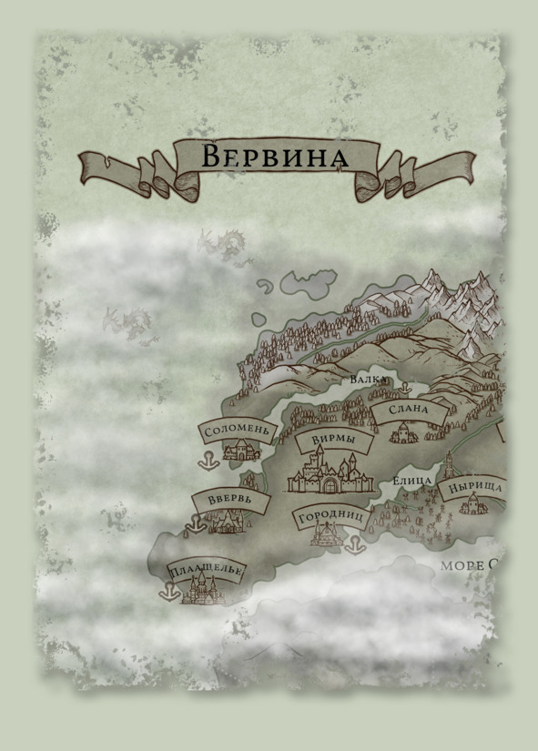 Сегодня Вервина – тихая земля на севере континента. Край, наполненный камнями, часть из них впитывают, концентрируют и отдают силу в этой части земли. Каменный ландшафт земель разнообразен: горы и холмы, скалы и утесы, камни, образующие пласты, каменные карьеры, глыбы, пронизывающие почву и формирующие острова. Камни рассыпаны по всей территории. Кроме камней, земли Вервины наполнены реками и озерами, хребтами и горными вершинами, лесами и равнинами, редкими болотами, плодородными полями на юге, а запад, восток и север омываются океанами.