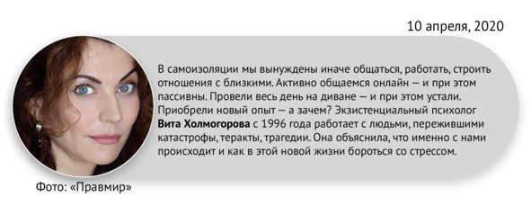 – У людей в одночасье рушатся бизнесы, сбиваются все прицелы, выпускники непонятно как будут сдавать ЕГЭ, учителя и ученики в стрессе от дистанционки. Просто сказать им всем: «Мыслите конструктивно» – нет, этого недостаточно. Раньше это работало, но сейчас мы все попали в какую-то абсолютно новую ситуацию неопределенности.