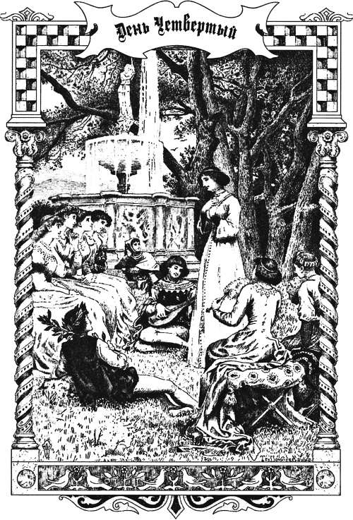 Кончен третий день Декамерона и начинается четвертый, в котором, под председательством Филострато, рассуждают о тех, чья любовь имела несчастный исход.