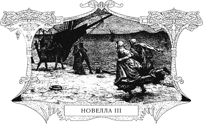 Оба юноши, безмерно пылавшие, услышав, что девушки будут им принадлежать, не трудились долго над решением, а сказали, что, если последствие будет именно такое, они готовы все сделать. Получив такой ответ от молодых людей, Рестаньоне через несколько дней был у Нинетты, к которой мог ходить не без больших затруднений; побыв с нею некоторое время, он объяснил ей, о чем говорил с юношами, и многими доводами старался склонить ее к этому предприятию. Это было ему не трудно, ибо она гораздо более его желала получить возможность быть с ним, не возбуждая подозрения, потому она решительно ответила ему, что это ей по сердцу, что сестры сделают, что она захочет, особенно в этом деле, и сказала ему, чтобы он, как можно скорее, устроил все для того потребное. Вернувшись к двум юношам, сильно пристававшим к нему по поводу того, что он им говорил, Рестаньоне сообщил им, что относительно их дам дело уже идет на лад. Решив между собою отправиться в Крит, продав некоторые свои имения под предлогом, что желают поехать торговать на эти деньги, обратив в деньги все, что у них было, они купили скороходное судно, тайком отлично вооружили его и стали поджидать назначенного срока. С другой стороны, Нинетта, хорошо знавшая настроение сестер, сладкими речами так возбудила в них желание к этому делу, что им казалось, они не доживут до его исполнения. Поэтому с наступлением ночи, когда им следовало сесть на судно, три сестры, вскрыв большой отцовский сундук, вынув из него большое количество денег и драгоценностей и тихонько выйдя со всем этим из дому, встретили, по условию, своих, поджидавших их, любовников, немедленно сели с ними на судно и, пустив в ход все весла, удалились. Нигде не останавливаясь, они на следующий вечер прибыли в Геную, где недавние любовники впервые вкусили радость и наслаждение своей любви. Подкрепившись здесь, чем было нужно, они отправились далее и, переходя от одной гавани к другой, еще до наступления восьмого дня прибыли без всякого препятствия в Крит, где купили большие, прекрасные поместья, а недалеко от Кандии построили роскошные и прелестные жилища. Здесь, обзаведясь многочисленной прислугой, собаками, ловчими, птицами и конями, среди пиров и празднеств и в веселии они стали жить со своими возлюбленными, точно бары, будучи счастливейшими в свете людьми.