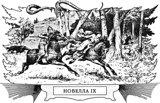 Вы должны знать, что, как рассказывают провансальцы, в Провансе жили некогда два знатных рыцаря, из которых каждый владел и замками и вассалами, и было одному имя мессер Гвильельмо Россильоне, а другому мессер Гвильельмо Гвардастаньо; а так как и тот и другой были люди храбрые в ратном деле, то очень дружили друг с другом и имели обыкновение всегда отправляться вместе на все турниры, ристания и другие потехи, вооруженные одинаково. И хотя каждый из них жил в своем замке и расстояние между ними было миль десять, тем не менее вышло так, что, невзирая на бывшую между ними дружбу и товарищество, мессер Гвильельмо Гвардастаньо безмерно влюбился в красивую и милую жену мессера Гвильельмо Россильоне и так сумел обнаружить это тем и другим способом, что она это заметила, и он понравился ей, ибо она знала его за доблестнейшего рыцаря, и возымела к нему такую любовь, что ничего более не желала и не любила, как его, и ничего другого не ожидала, как чтобы он попросил ее о том же, что и не замедлило случиться, и они сошлись друг с другом раз и другой, сильно любя друг друга. Но так как они общались друг с другом не особенно осторожно, случилось, что муж это заметил и так вознегодовал, что любовь, которую он питал к Гвардастаньо, обратил в смертельную ненависть; но сумев лучше скрыть ее, чем любовники свою любовь, решился его убить.