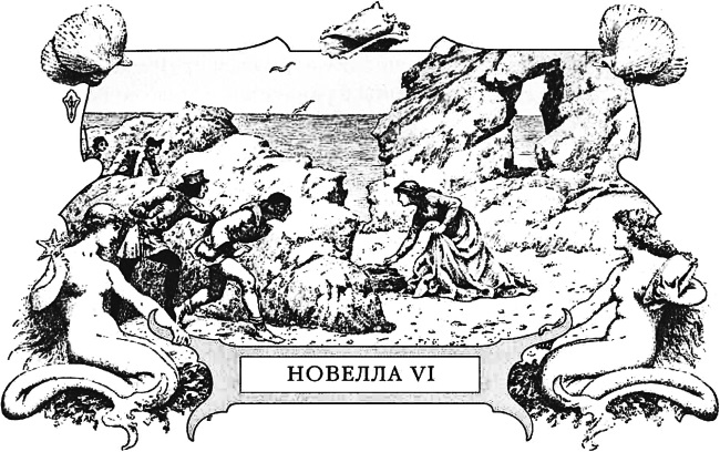 Когда их любовь была в таком разгаре, случилось однажды летом, что девушка была одна-одинешенька на берегу и, бродя от одного утеса к другому и ножом отрывая морские ракушки от каменьев, дошла до одного места, окруженного скалами, где ввиду тени и удобства находившегося там источника со студеной водой, приютилось вместе со своим судном несколько молодых сицильянцев, шедших из Неаполя. Найдя девушку, которая еще не приметила их, очень красивой и видя, что она совсем одна, они решили промеж себя схватить ее и увезти; за решением последовало исполнение. Несмотря на то, что девушка кричала громко, они взяли ее, посадили на судно и уехали; добравшись до Калабрии, стали совещаться, кому из них она будет принадлежать, и вскоре оказалось, что каждый из них хотел завладеть ею; вследствие чего, не согласившись между собою, боясь дойти до худшего и из-за нее испортить свои отношения, они сошлись на том, чтобы отдать ее Федериго, королю Сицилии, который в то время был молод и любил такого рода дела; приехав в Палермо, они так и поступили. Король нашел ее красивой, и она ему понравилась, а так как он был несколько слабого здоровья, то и приказал поместить ее в великолепных зданиях, находившихся в его саду, что назывался Кубой, и там ухаживать за ней до той поры, пока он сам окрепнет; что и было исполнено.