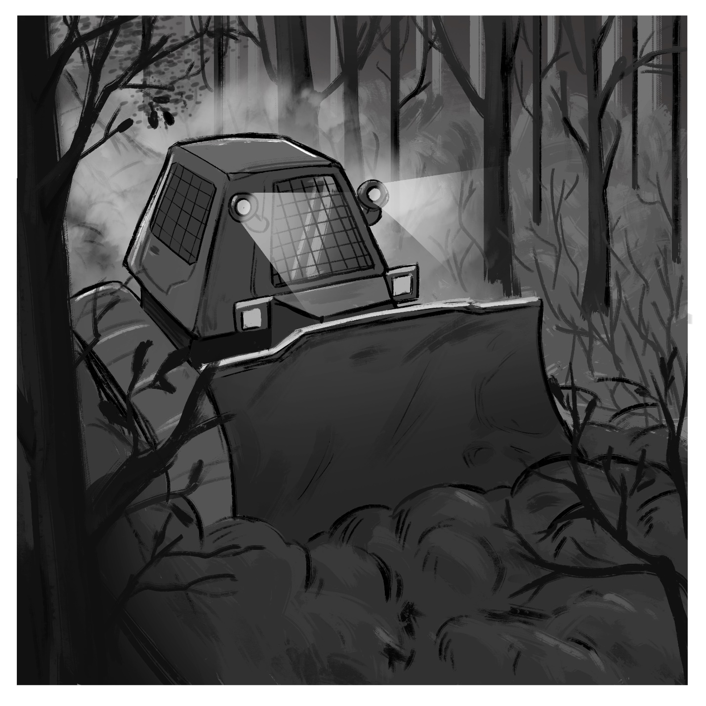 Бульдозер прокладывал траншею преимущественно между деревьями, но иногда шел прямо напролом, если дело касалось невысокой растительности. Мы должны были идти сзади и обрубать все длинные ветки, которые могли бы помочь пламени перейти через траншею за счет верхового пожара по стволам деревьев. Таким образом, ночной вызов обернулся для нас изматывающей работой по прокладке противопожарной полосы почти что в кромешной темноте. У нас были фонари, но это все равно не то же самое, что работать днем.