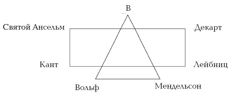 Вернувшись в свой крошечный кабинет, он обнаружил бумажку и, прежде чем выкинуть ее в мусорное ведро, застыл, рассматривая ее, на несколько минут. Рисунок 1 объяснялся просто – скукой. Рисунок 2 казался продолжением рисунка 1, но добавленные имена показались ему дичью. Нет, Ксенократ там мог находиться – в этом была своя абсурдная логика, и Протагор тоже, но… что там делали Томас Мор и Сен-Симон?! Что там делали, как могли вообще появиться там Дидро и, Боже правый, португальский иезуит Педро де Фонсека, который был одним из комментаторов Аристотеля, им счет на тысячи идет, но его же никакими акушерскими щипцами не протащишь в ряд великих мыслителей?! А вот рисунок 3, напротив, обладал своей собственной логикой – логикой придурковатого подростка, подростка, бродяжничающего по пустыне в изношенной одежде – но все же в одежде. Все эти имена, можно было сказать, принадлежали философам, которые посвятили труды онтологическому аргументу. Вот эта В, что сидела на верхнем углу треугольника, вписанного в четырехугольник, могла быть Богом или существованием Бога, которое вытекает из его сущности. Только тогда Амальфитано заметил, что на рисунке 2 также присутствуют А и В, и тут уж уверился: это все жара, он к ней не привык, и из-за нее он пишет чушь во время занятий.