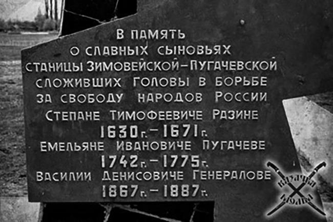 Этот мемориал свидетельствует о том, что Степан Разин и Емельян Пугачёв родились в одной станице – с разрывом в сто лет!
