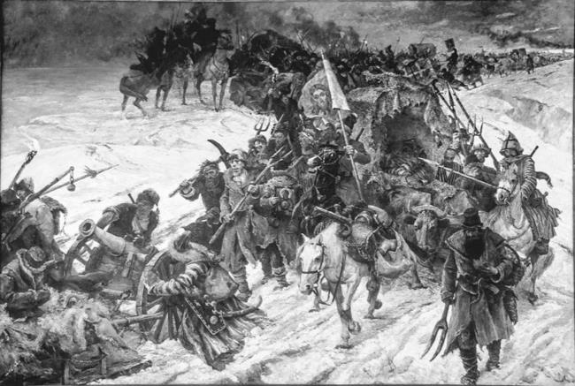 Значит основания были. То есть войска были отстроены настолько, что Белобородов, принявший решение присоединиться к Пугачёву только в январе, уже в феврале (!) командует в масштабе огромного фронта (расстояние и насыщенность крепостей и заводов вполне можно было назвать Северным Фронтом!) – от Екатеринбурга до Кунгура! 270 километров – по тем временам это край света, три-четыре дня пути на лошади. Лошадь в те времена главный вид транспорта. Если эти три-четыре дня перевести в автомобиль, то на наши мерки это был фронт в 3 тысячи километров минимум. То есть как от Москвы до Новосибирска.