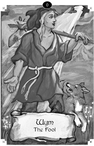 Путник шагает среди полевых цветов, растущих на зеленом бескрайнем лугу. Вдалеке у горизонта виднеются скалистые горы. Небо мрачное, предгрозовое, но его прорезают солнечные лучи, устремляя свой свет непосредственно на Шута. Солнце словно бы светит исключительно для него, освещая путь. Весь мир крутится вокруг его персоны и распростерт перед ним.