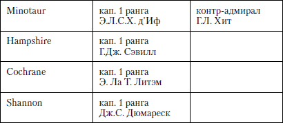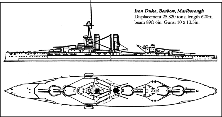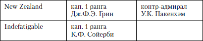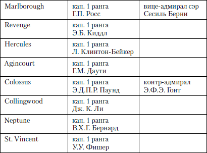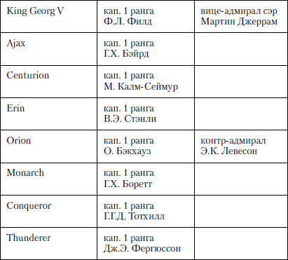 У англичан отсутствовали линкоры «Эмперор оф Индиа» и «Куин Элизабет», находившиеся в ремонте, а также только что введенный в строй «Ройял Соверен», который еще нельзя было считать боеспособной единицей. Линейный крейсер «Аустралиа» стоял в доке. Знаменитый «Дредноут», увы, больше не являлся кораблем первой линии и сейчас возглавлял 3-ю эскадру линкоров (броненосцы типа «Кинг Эдуард VII»).