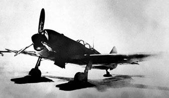 Истребитель Ла-11 на лыжах. Лыжи имели сверху специальное гнездо для свободного захода самолёта на колёсах, фиксировавшихся упорами с полукруглыми вырезами. После отрыва самолёта лыжи оставались на земле. Закатка истребителя осуществлялась командой из 15 человек за 2–3 минуты