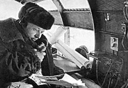 Бортмеханик И. М. Каратаев в кабине полярного Пе-8.