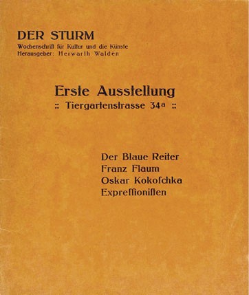 Соответственно в каталоге первой выставки «Штурма» мы обнаруживаем имена не только членов самого «Синего всадника» – Василия Кандинского, Альберта Блоха, Генриха Кампендонка, Робера Делоне, Давида и Владимира Бурлюков, – но и Андре Дерена, Жоржа Брака, Анри Руссо, Рауля Дюфи, Мориса де Вламинка, Наталии Гончаровой, а еще Эрнеста Кирхнера и Макса Пехштейна, официально числившихся в группе «Мост» (Die Brücke). Представлялась также живопись и графика Оскара Кокошки, первого и главного художника «Штурма», в частности выполненный им портрет самого Герварта Вальдена. Изобразительный ряд дополняли скульптуры Франца Фляума. Название выставки звучало так: «“Синий всадник”. Франц Фляум. Оскар Кокошка. Экспрессионисты».