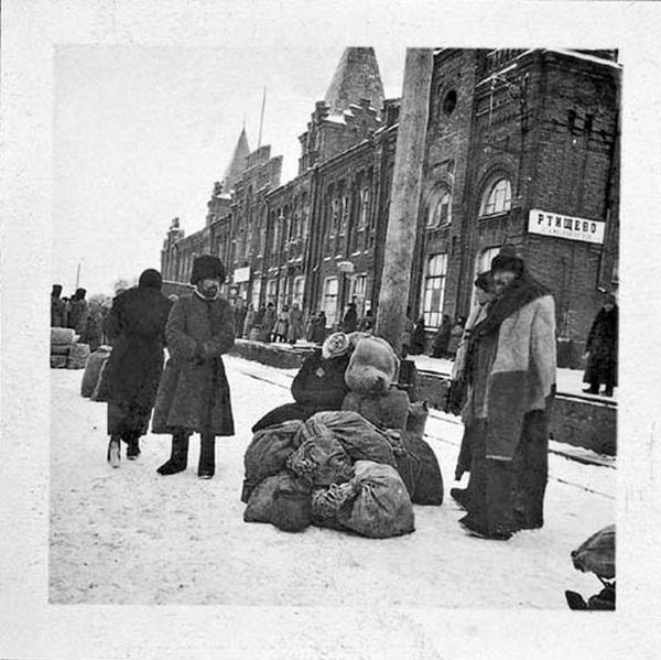 Беженцы на железнодорожном вокзале станции Ртищево Саратовской губернии, где находилась распределительная база грузов Миссии Нансена