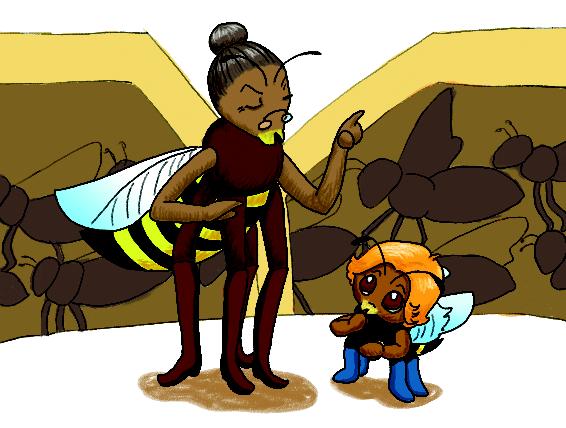 Der Käfer kam zurück und warf mürrisch ein Klümpchen Honig hin.