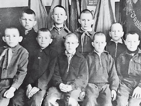 Юные пионеры. В верхнем ряду 2-й слева Игорь Рудаков, 3-й слева Володя Агеносов