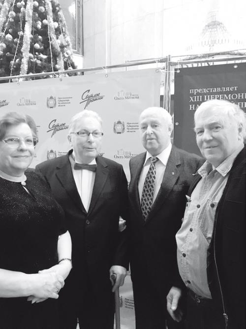 В Челябинске на вручении премии «Светлое прошлое», январь 2017 г. Слева направо: В.М. Рудакова, В.В. Агеносов, И.В. Рудаков, С.Н. Скороходов