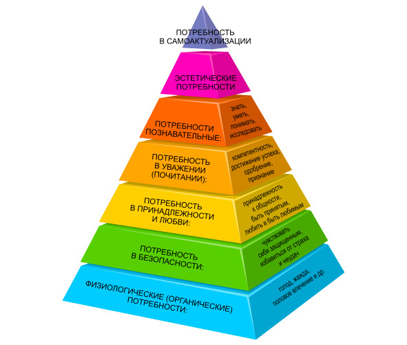 Многие помнят со школьных или студенческих времен про такого замечательного человека, как Абрахама Маслоу. Примечателен он тем, что очень красиво визуализировал потребности людей.