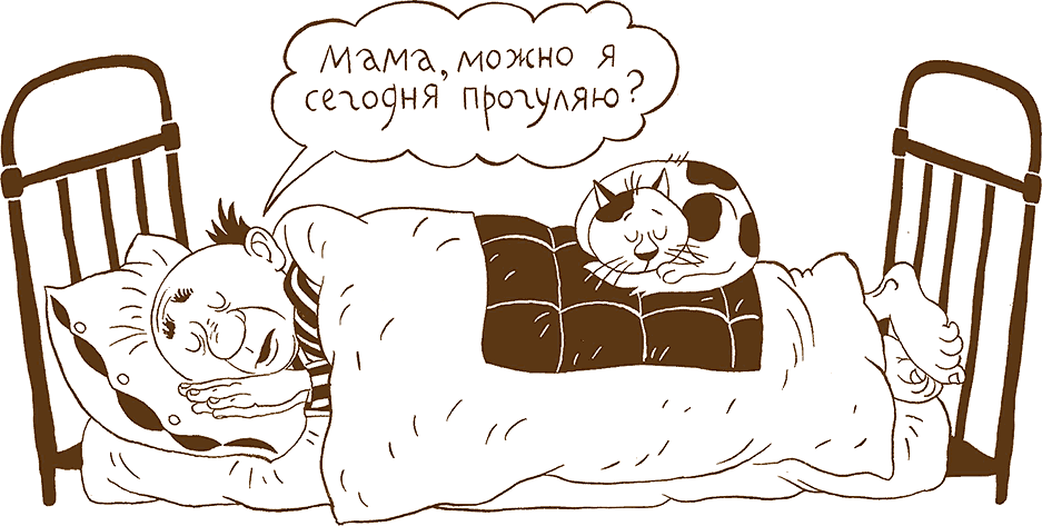Вот только в школу с утра идти неохота. Холодновато, да и вообще… Я говорю маме: «Можно, я сегодня прогуляю? Скажу, что заболел. А то у меня там есть одна ученица, сил нет учить её, прямо беда». А мама мне: «Как не стыдно, это же неправда, ты совершенно здоров! Иди и учи!» Как в анекдоте получается…