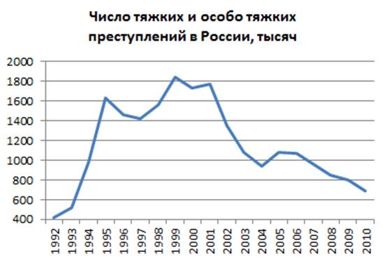 Рисунок 9. Рост преступности и числа тяжких преступлений после развала СССР
