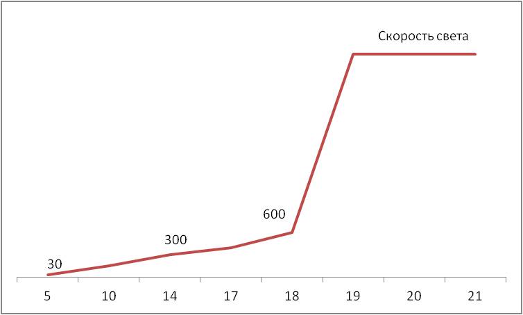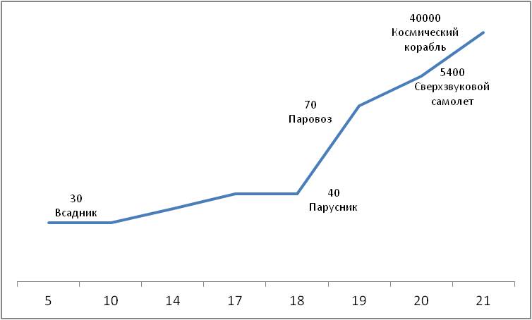 Скорость перемещения человека за полтора десятка веков возросла значительно, приблизившись в 20 веке к той, что позволила человеку покинуть Землю (8 км/сек – первая космическая) и отправить в дальний космос научные станции (17 км/сек – третья космическая). Юрий Гагарин покинул родную планету с территории СССР в 1961, через пятьдесят лет люди не продвинулись дальше орбиты Луны, а полеты к другим звездам остаются мечтами, которые никто особенно и не стремится воплощать в России. Причин этому можно найти множество, но самая главная – разобщенность и понижающийся культурный и научный уровень большинства населения Земли, нежелание власть имущих различных стран (в том числе и России) объединять свои усилия для достижения высоких целей познания Природы.