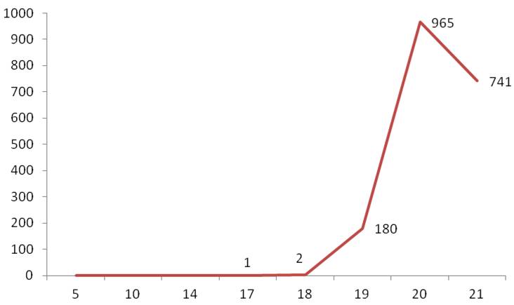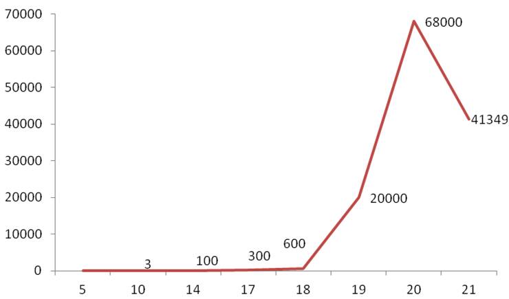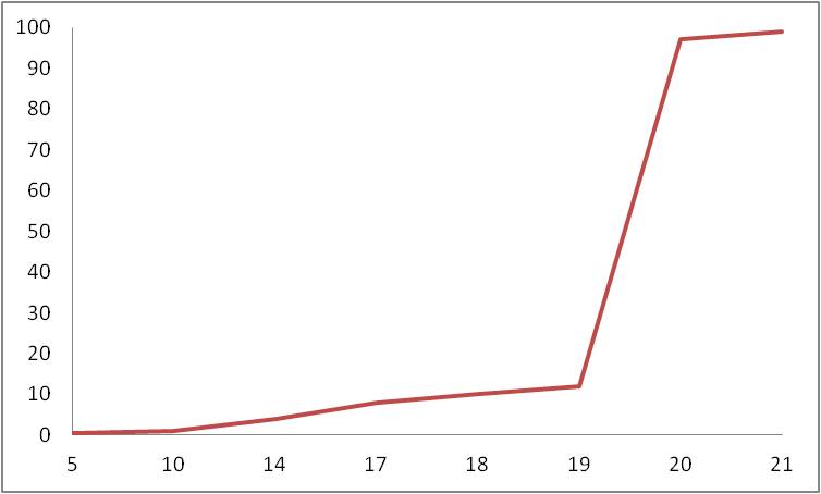 Рисунок 11. Рост уровня грамотности населения (в %) за период 5-21 веков