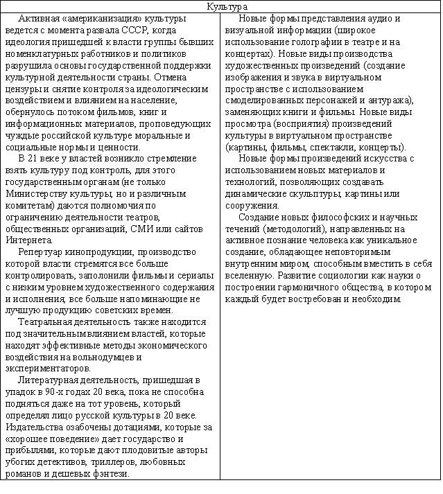 В 21 век Россия вступила со всеми проблемами, накопившимися за многовековую историю – низкий уровень жизни для большинства; высокий уровень алкоголизма и низкий уровень культуры; слабая система здравоохранения и выродившаяся система образования; сырьевая экономика, не способная к обеспечению страны необходимым; новая гонка вооружений, поглощающая бюджет страны и т.п.