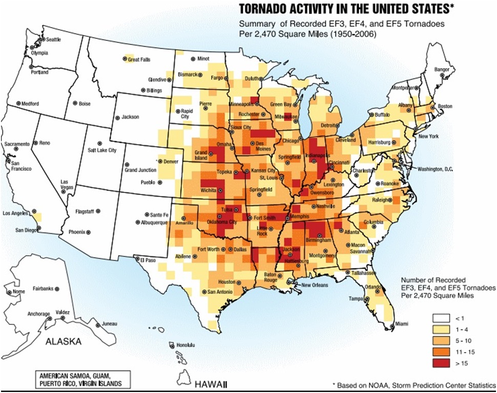 Рисунок 38. Среднегодовое распространение торнадо в США