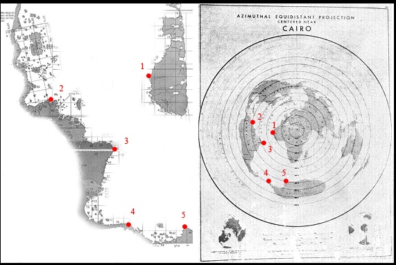 Убедительно ответить на эти вопросы, не выходя за рамки ограничений, налагаемых неприкосновенными для современной официальной науки догмами, не представляется возможным. Только один пример: сотрудники технической разведки ВВС США определили центр проекции карты Пири Рейса. При взгляде на предложенную ими схему возникает ощущение, что оригиналом для неизвестного далёкого предшественника турецкого адмирала послужил… фотоснимок, сделанный с орбиты Земли примерно над тем местом, где сегодня расположен город Каир!