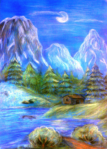 Взяла я в руки карандаш,Стала рисовать пейзаж,А потом вошла я в раж,Применив пастель, гуашь.Древний мир изобразила —Получилось очень мило.