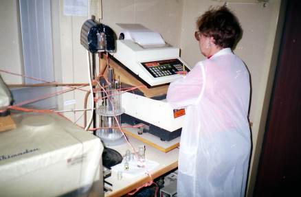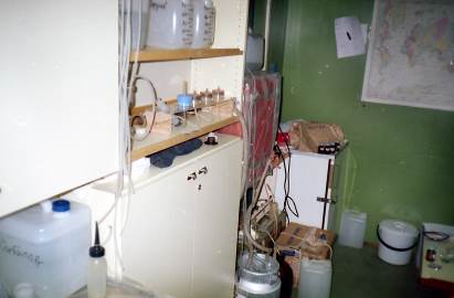 Во время отбора утренней 9 часовой пробы воды ведром, пошёл первый снег в виде крупных белых хлопьев. Очень скоро в углу, у двери лаборатории даже намело небольшой сугроб. После отбора поверхностной воды ведром приступили к своим делам. Саша – фильтровать, Абрамовна – мерить углеводороды, а я мыть полиэтиленовую посуду для будущих работ на Новолазаревской. Посуда оказалась на редкость грязной, т.к. в ней хранились пробы льда и снега с крыши ИОРАН, где стоит станция мониторинга атмосферных осадков. Поэтому я просто залил в нее подкисленной воды, а мыть буду завтра. Короче говоря, завтра у меня будут проблемы с отмыванием этой посуды. На полднике мы встретили поникшего Дениса, который сообщил, что ему в конце концов удалось отловить Леонтьевича, и тот ему сказал, что насчет полета на континент надо было договариваться вчера, а сейчас программа работ на станции Новолазаревская уже утверждена начальником экспедиции Алексеевым и вообще, у тебя мол программа морская, так что и сиди братец на борту, может быть высадишься на Прогрессе, там вроде бы тоже есть озеро. Мы пытались Дэна утешить, как могли. Может в дальнейшем сможем взять его с собой. Саша Новигатский, по-моему, не горит желанием высаживаться на континент. Ему хватило этого во время предыдущего рейса. Ну, а мы с Дениской на новеньких, и горим энтузиазмом.