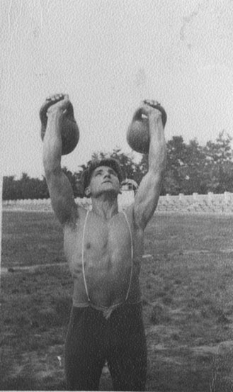 Специально для этих целей литейщики изготовили два снаряда по 40 килограммов (на фото одну из этих гирь Миша держит в правой руке).