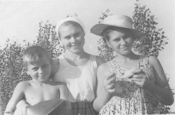 Славик, Нина Никифоровна и Мила. 1953 год. Берег заводского пруда