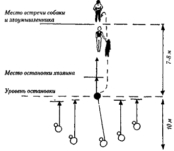 При проверке этого элемента «злоумышленник» может давать любые команды, набрасывать корм на морду собаки, приближаться к собаке в любом темпе.
