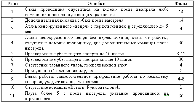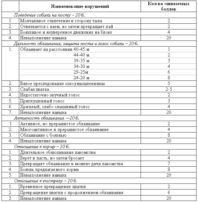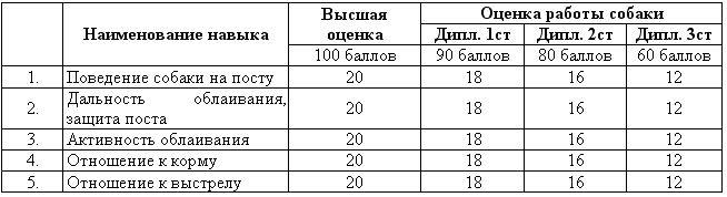 Таблицы баллов оценки работы собаки на испытаниях по КС