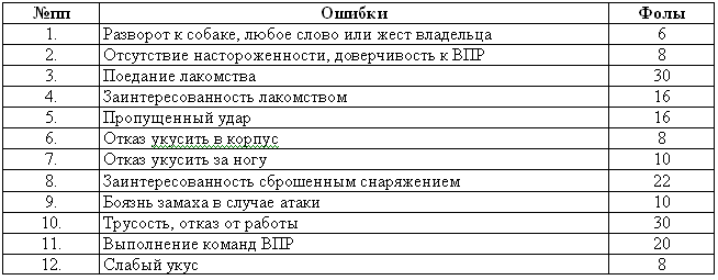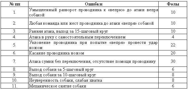 Если собака с первой атаки вместо корпуса хватает ногу и пах – штраф не начисляется.