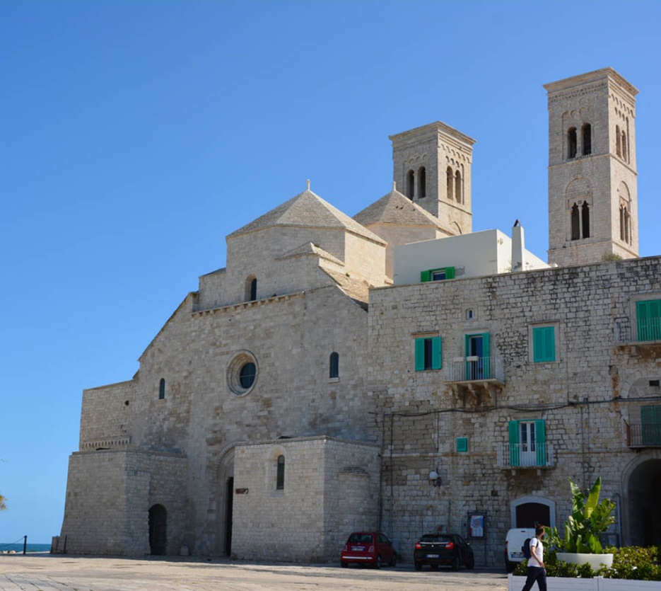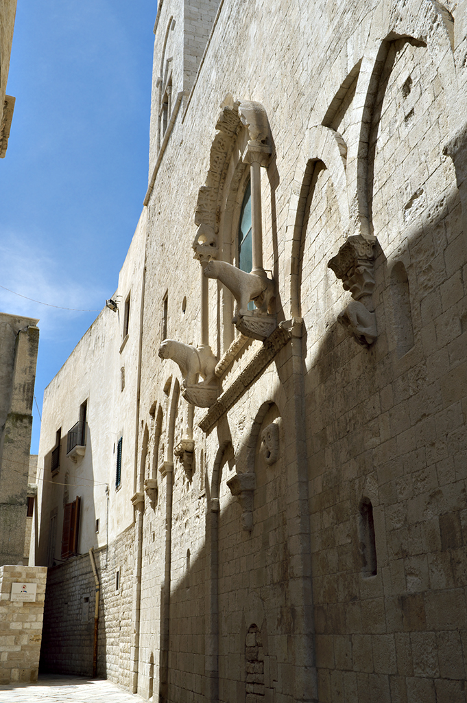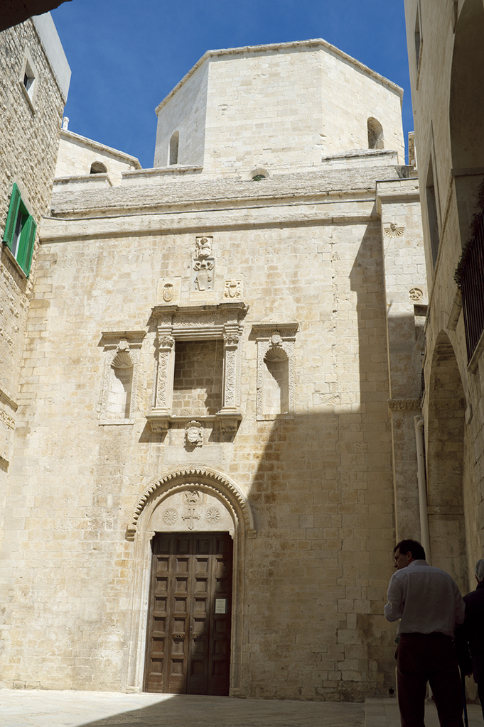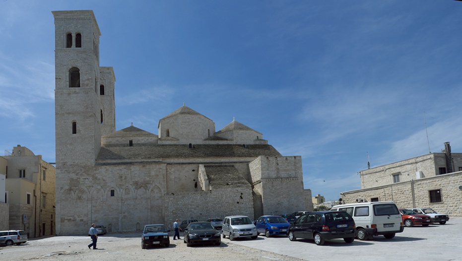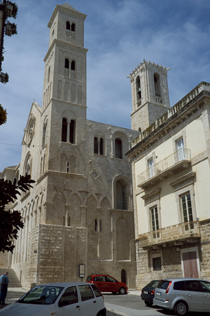 Собор построен почти на самом берегу моря. Как ни странно, его выходящий на набережную восточный фасад абсолютно лишен декора. Главным входом, как и в соборе Мольфетты, служит дверь в южном фасаде.