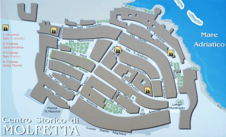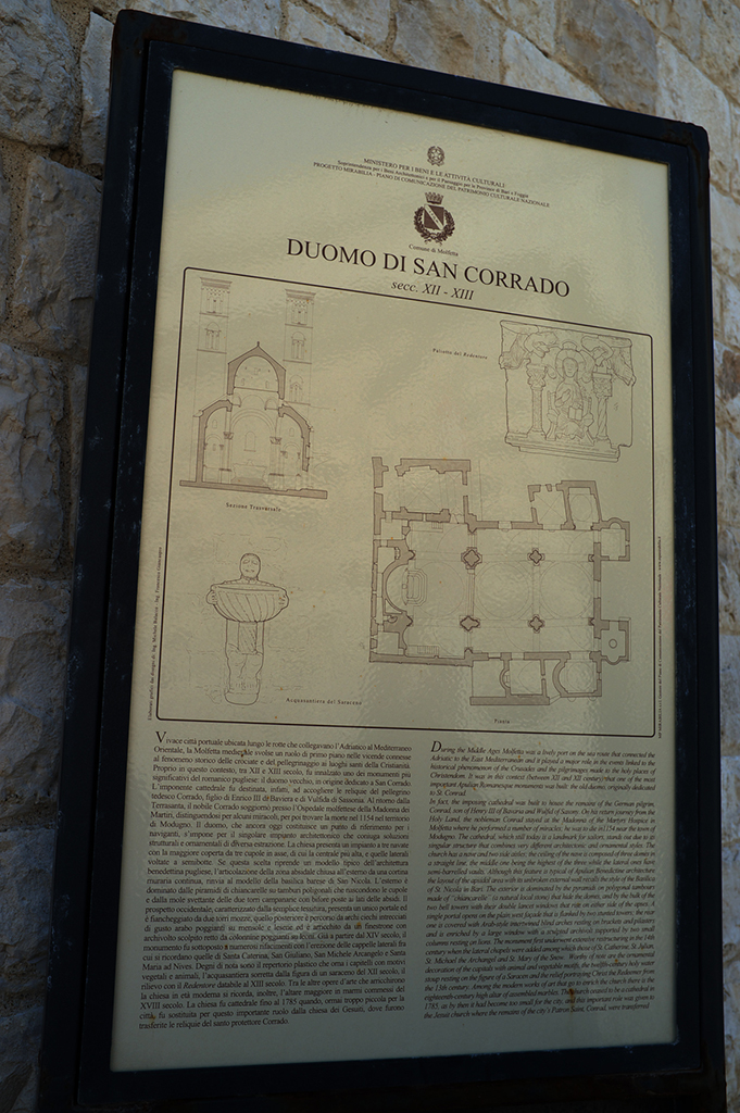 Коррадо – Конрад – один из крестоносцев, Конрад Баварский, был канонизирован и стал святым покровителем города. День Святого Коррадо пышно отмечается в городе 9 февраля и 8 сентября. За собором – лабиринт улиц старого города.