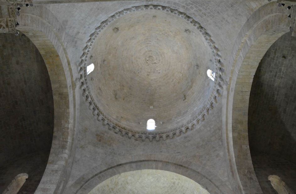 Перекрытие трех пролетов центрального нефа составляют ТРИ КАМЕННЫХ КУПОЛА С ПРОРЕЗАННЫМИ В ИХ ОСНОВАНИИ СВЕТОВЫМИ ПРОЕМАМИ.