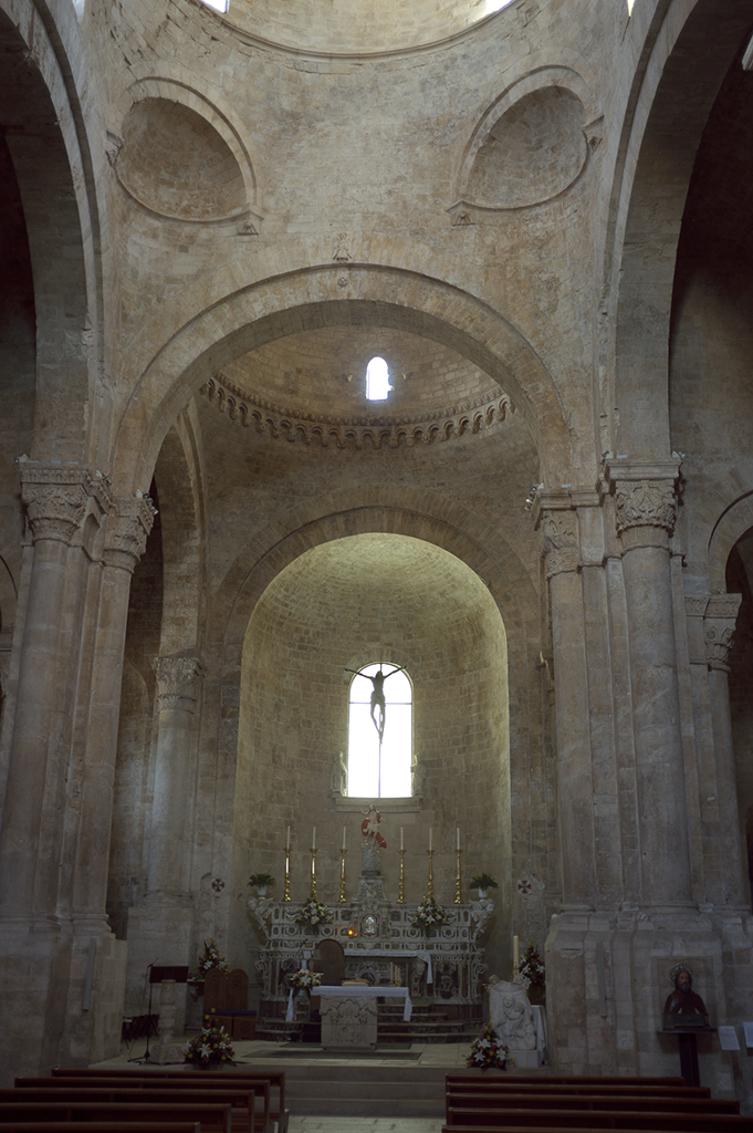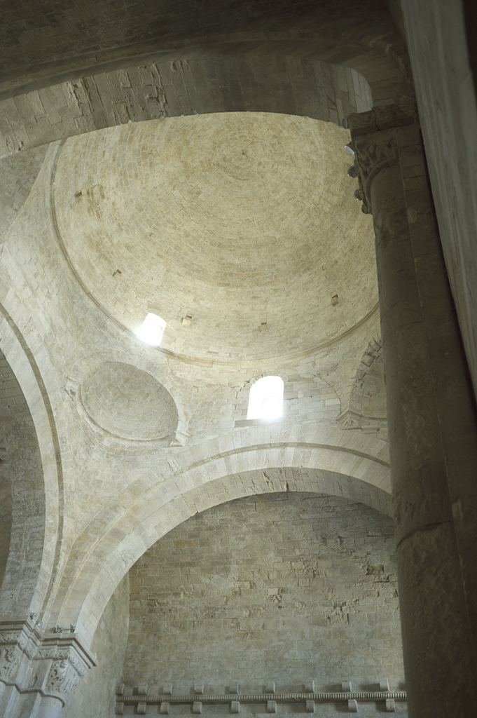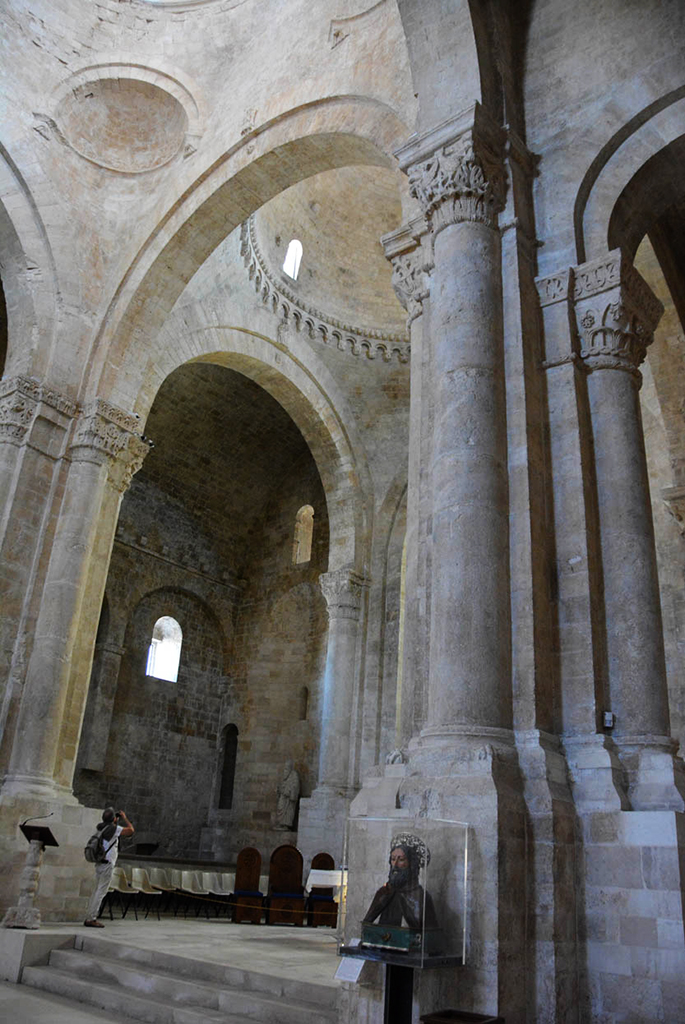 В принципе, конструктивная схема этого здания ближе всего к маленькой церкви Сан Леонардо ди Сипонто, в которую мы попали в самом начале нашего путешествия по Апулии: боковые нефы перекрыты сводами, представляющими собой четверть цилиндра.