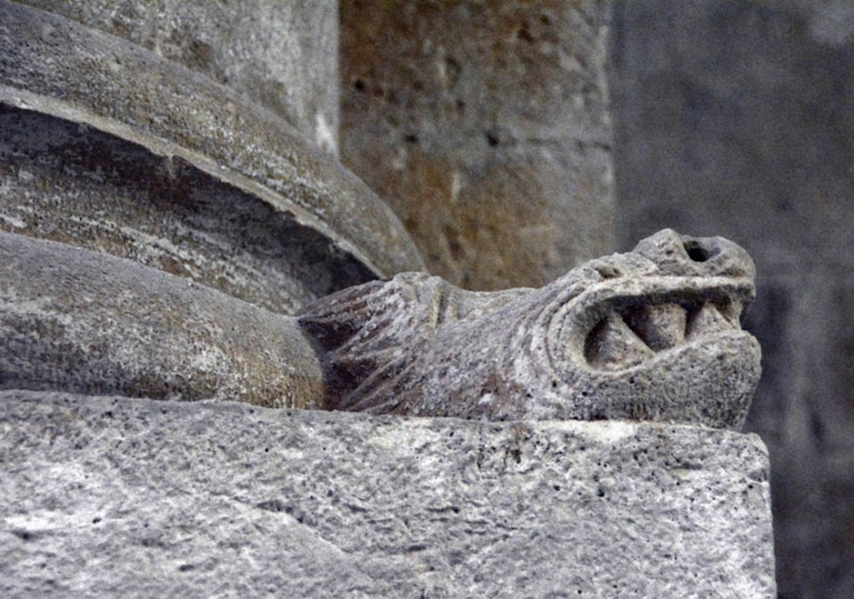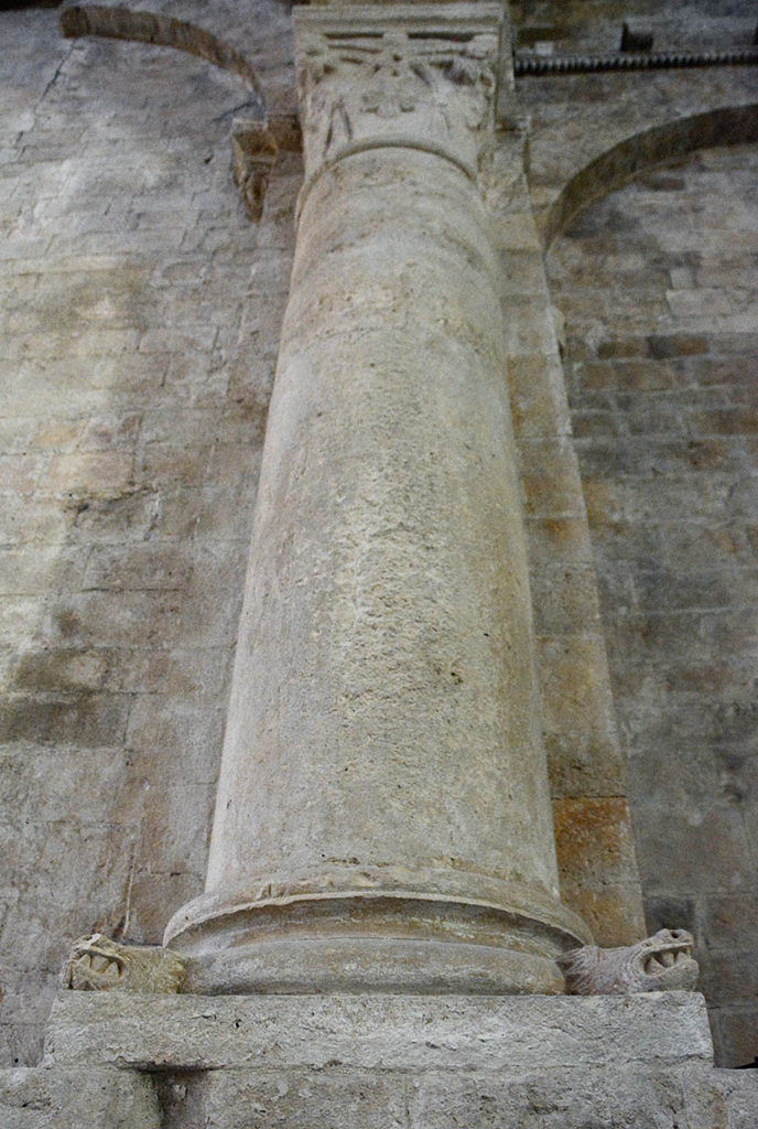 Плоская стена вдоль улицы с характерными норманнскими арками, окно с резным арочным карнизом, львы, над стеной – башни собора. Все вроде на месте, а входа нет. Ну, то есть, проем-то был. Маленький и без портала. Но он был заложен, судя по всему, несколько сотен лет назад. Мало того, это была восточная, алтарная стена храма. Но абсиды на ней тоже не было.